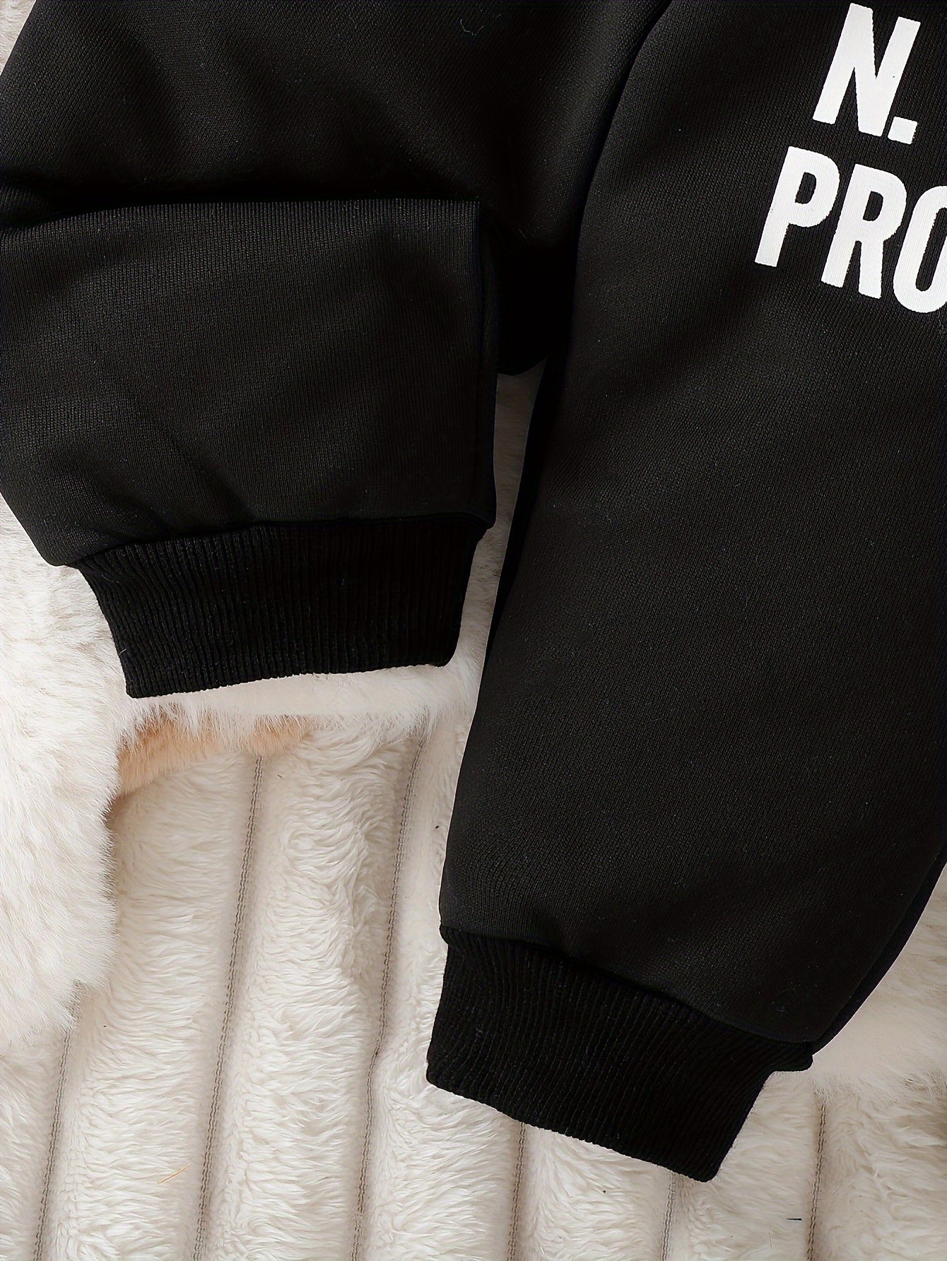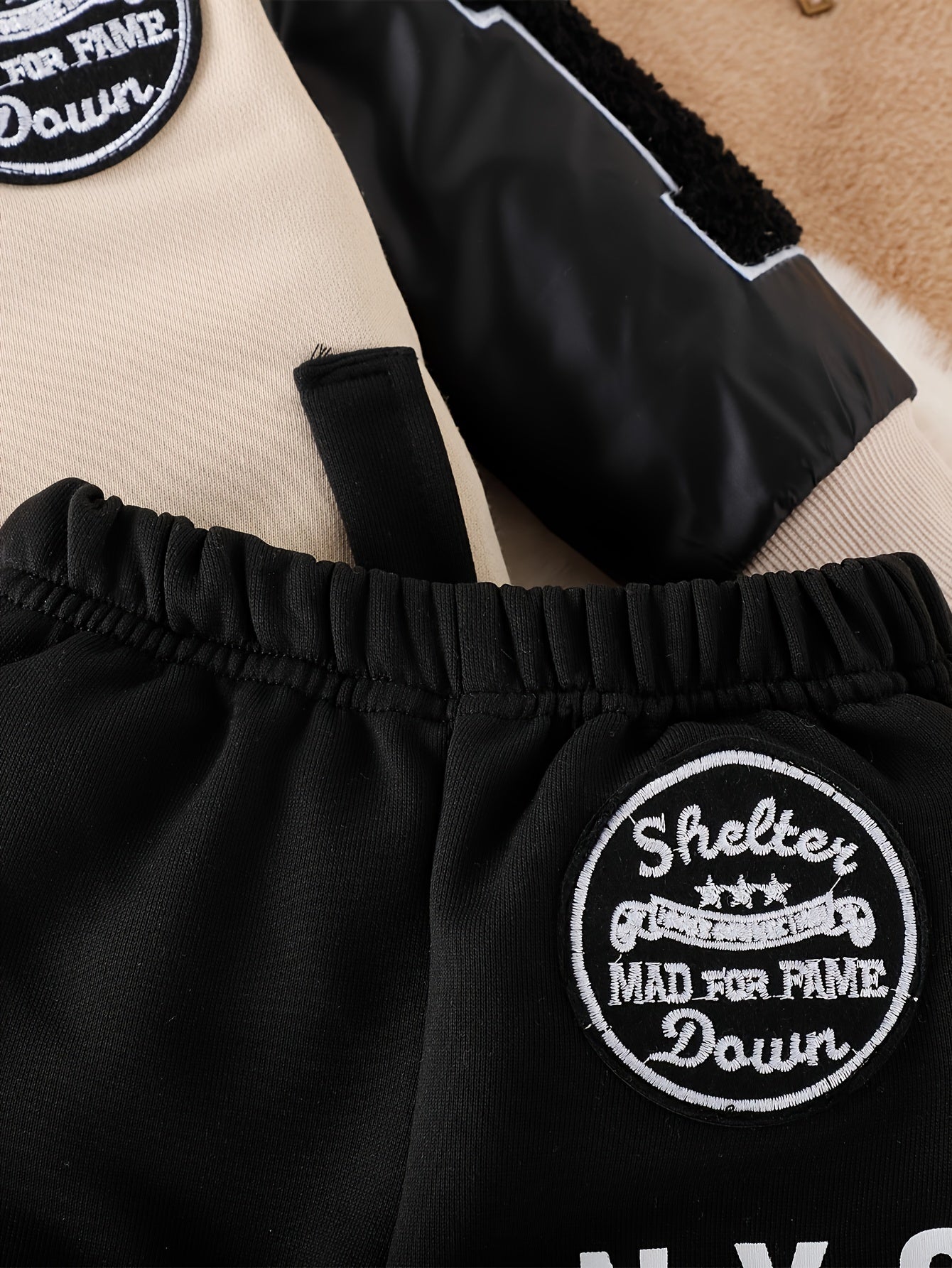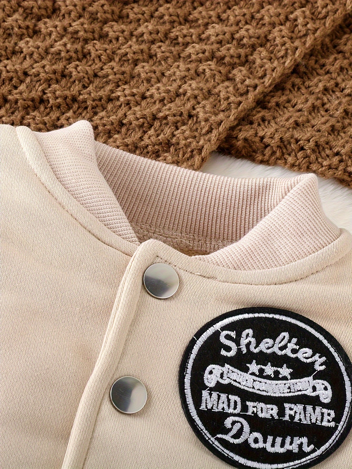 Boys' 2pcs Fall/Winter Outfit Set, Cotton & Polyester Blend, Long Sleeve Knit Sweater with Alphabet Applique, Regular Fit Pants, Casual Alphabet Pattern, Machine Washable, Outdoor Clothing, for Outdoor