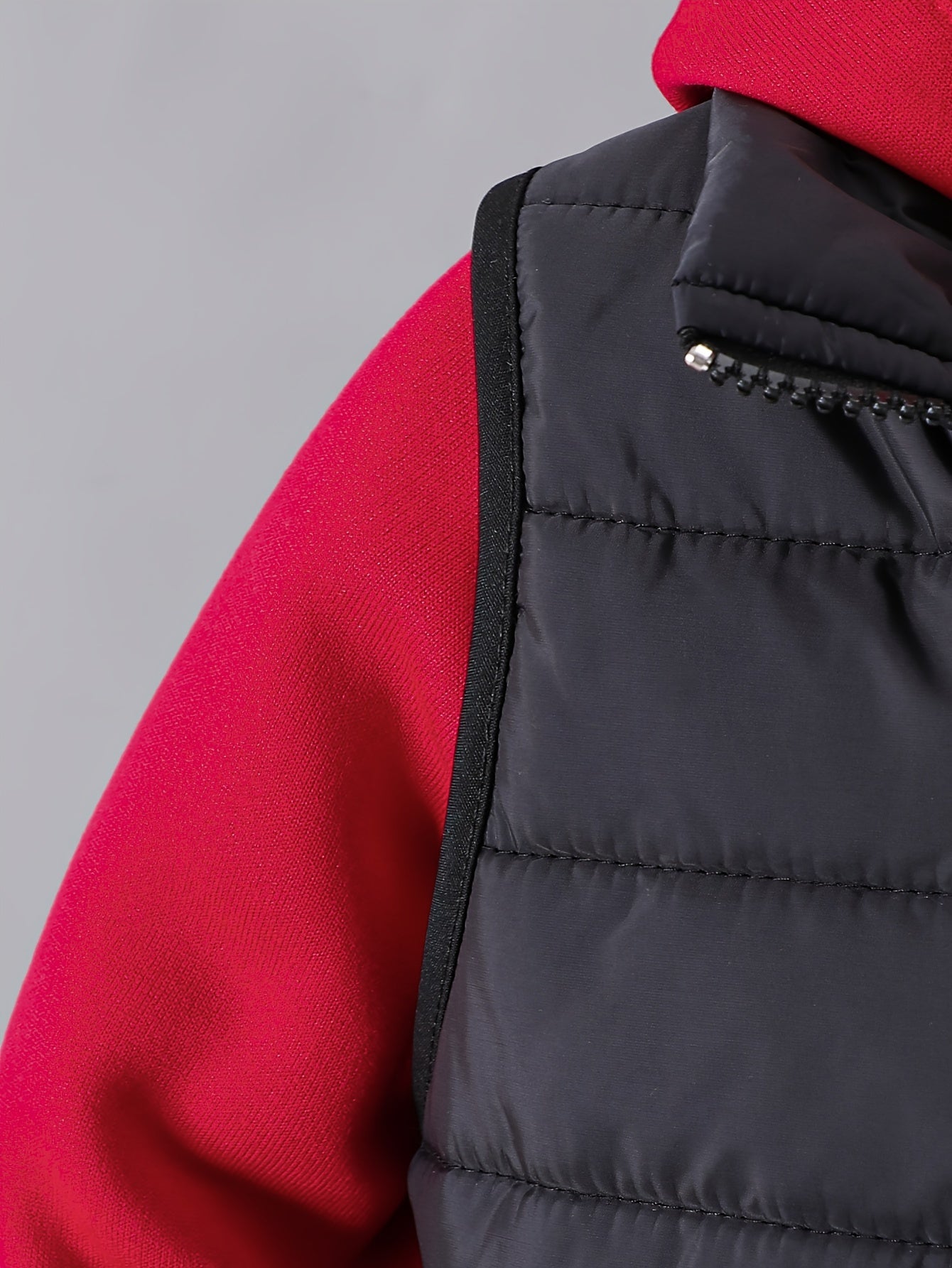 Boys' 3pcs Fall/Winter Outfit Set - Casual Zip Vest, Hoodie & Pants in Solid Color Gray - for Ages 0-3, Perfect for Outdoor