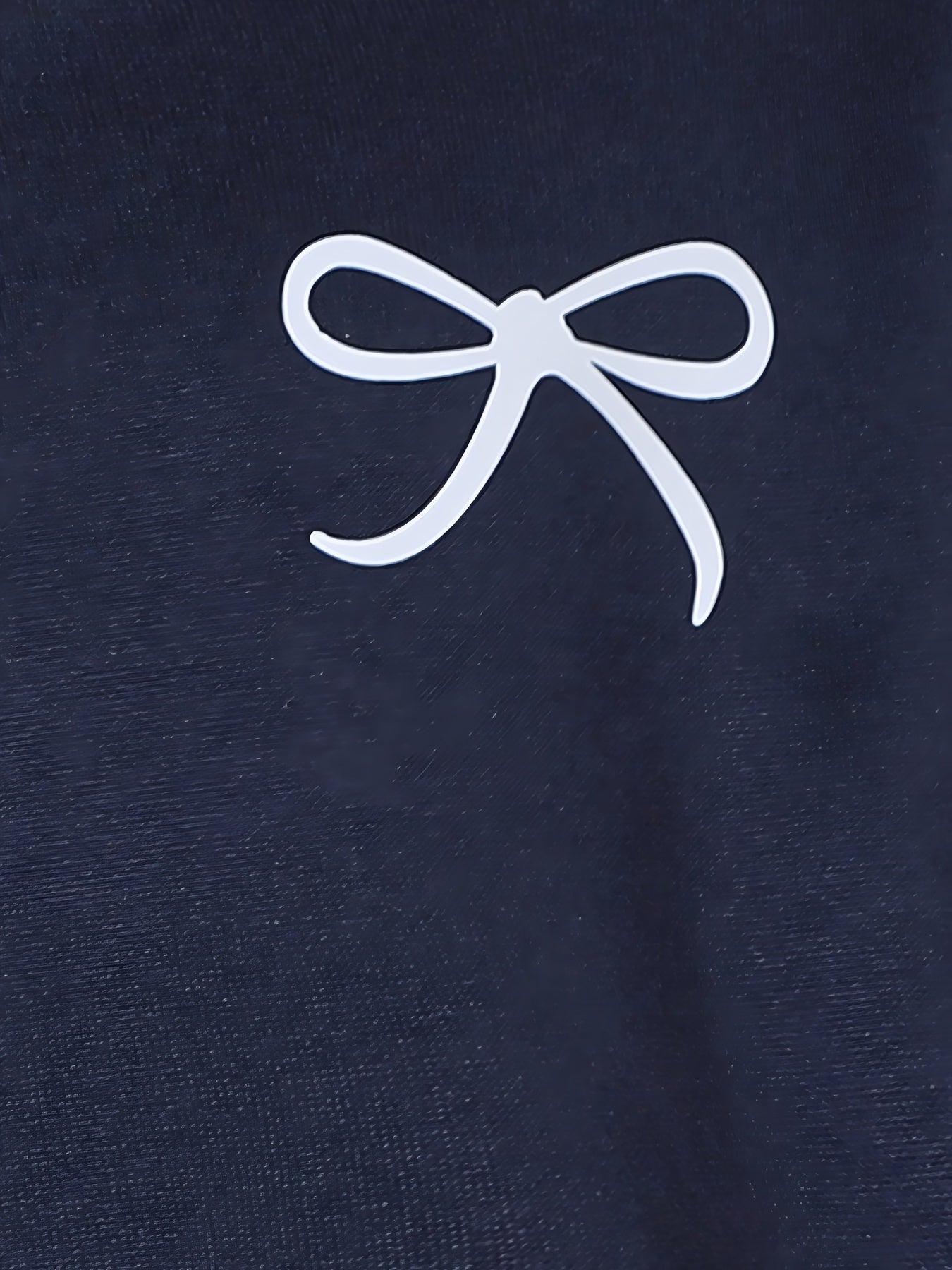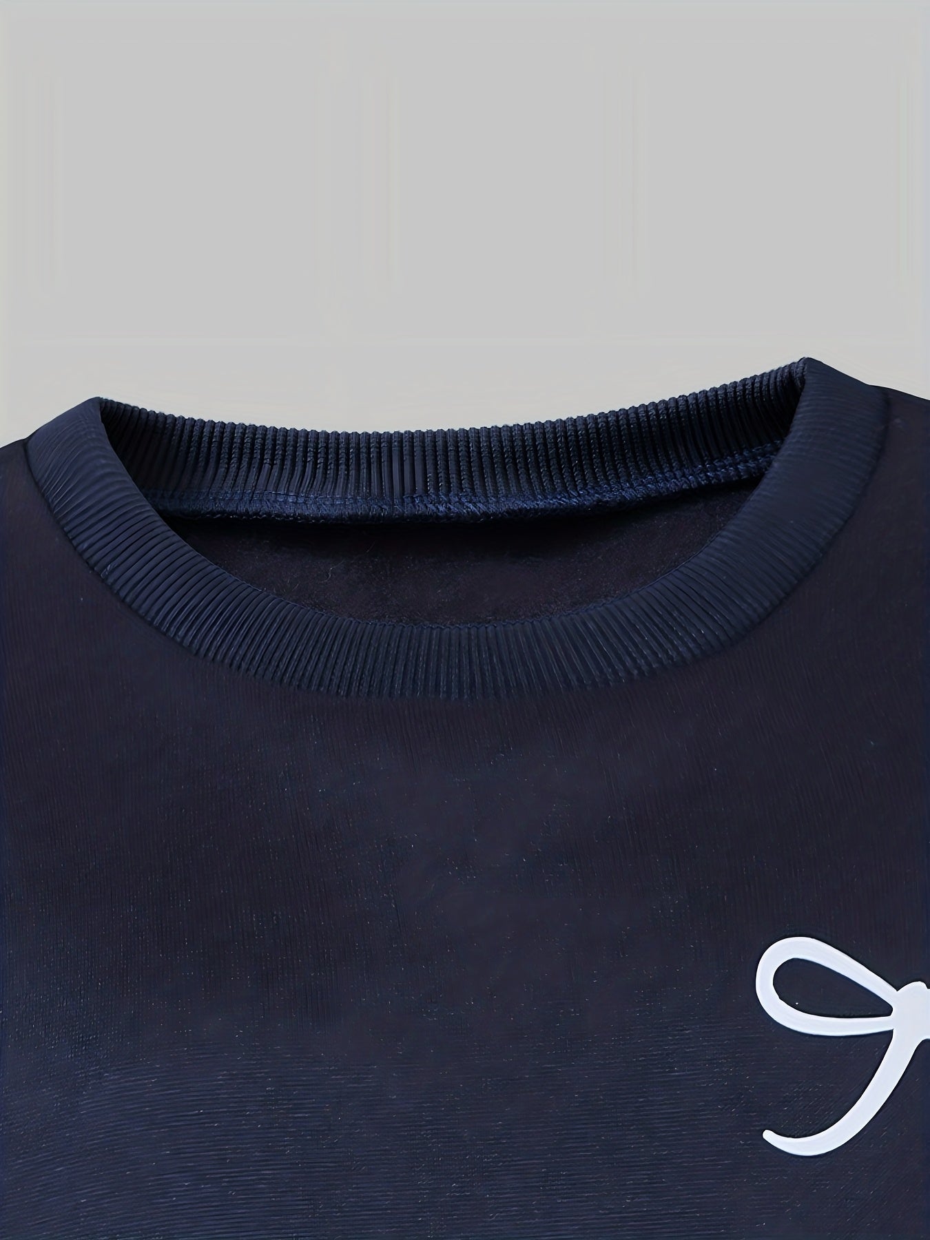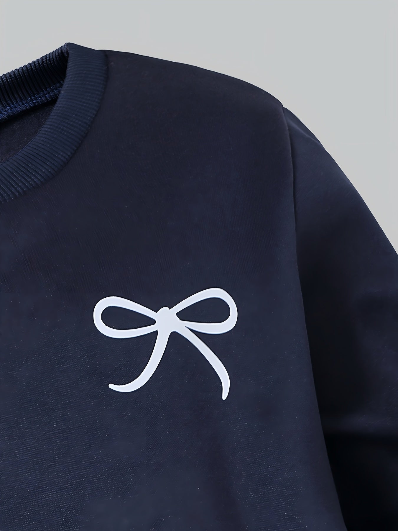 Girls' 2pcs Winter Outfit Set - Oversized -Lined Bow Print Sweatshirt & Navy Blue Wide-Leg Pants, Cozy 2pcs Sweatsuit for, Playdates, Casual Wear - Warm Loose-Fit Matching Clothes (Ideal Gift for), Perfect for Outdoor